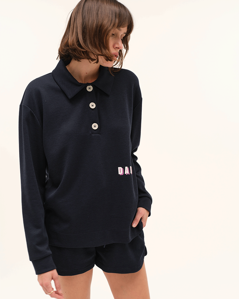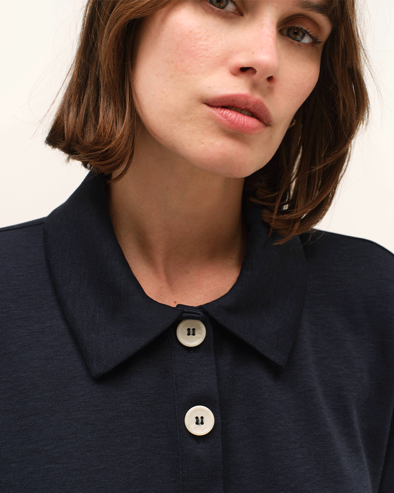 - Col polo fermé par 3 boutons contrastés.