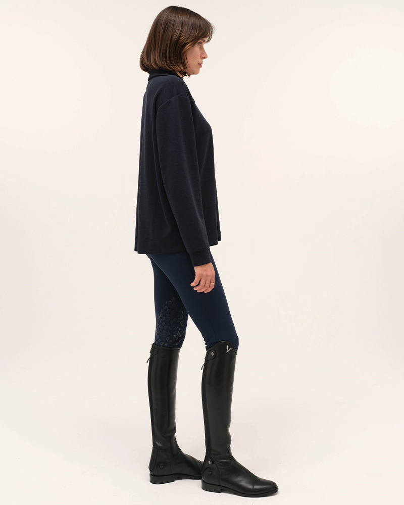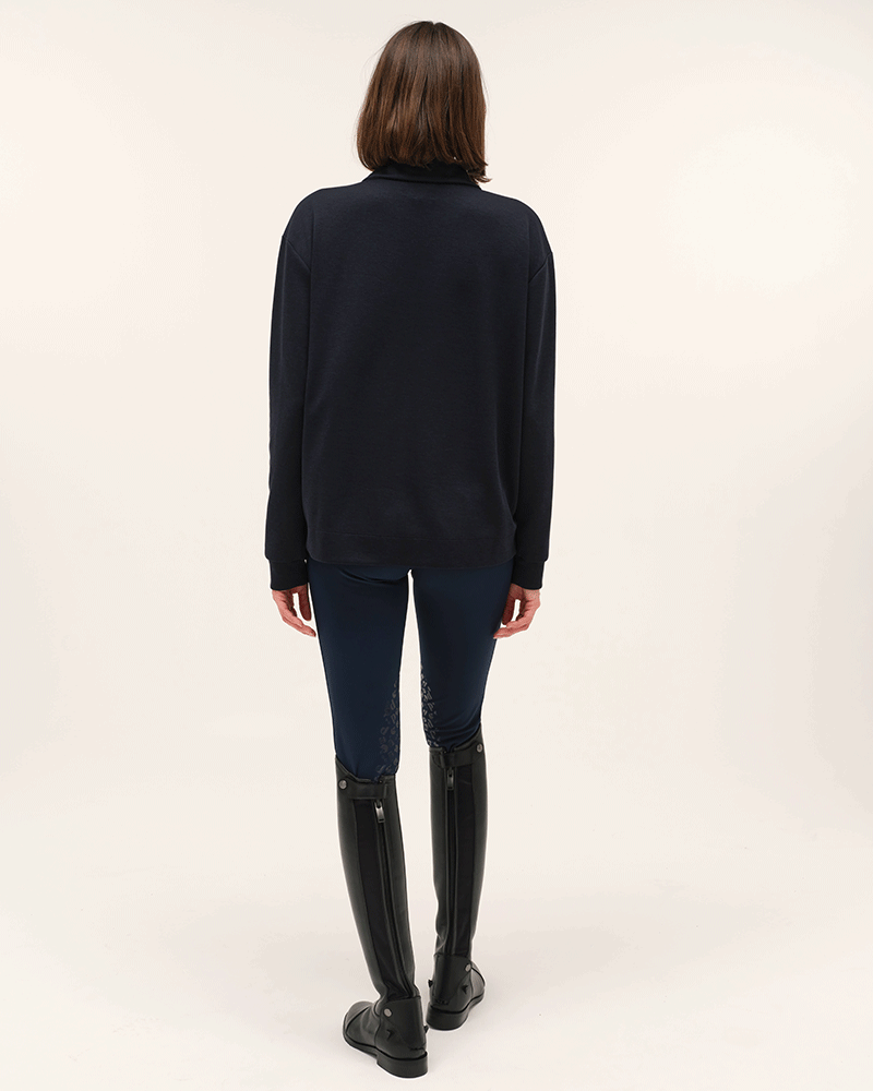 Sweat d’équitation léger à manches longues, à porter directement sur la peau ou en superposition. Coupe ample et matière très douce.